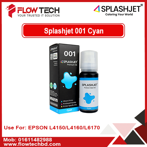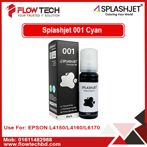 Experience premium printing at an affordable cost with Splashjet 001 Black Compatible Refill Ink, crafted specifically for Epson EcoTank models including L4150, L4160, L6160, L6170, L6190, and L655. This dye-based ink delivers dark, crisp prints ideal for everyday documents, reports, and professional materials.