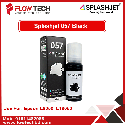 Splashjet DYE 057 Black Ink is a premium refill solution for inkjet printers, offering deep black tones, reliable performance, and excellent compatibility. Ideal for everyday and professional use.