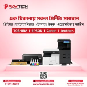 Founded with a vision to provide the best IT products and after-sales service nationwide, FlowTech has become a trusted name among businesses, offices, and printing professionals. As the official dealer of Toshiba Photocopiers and authorized distributor of SPLASHJET Inks in Bangladesh, FlowTech guarantees 100% genuine products with full service support and warranty.
